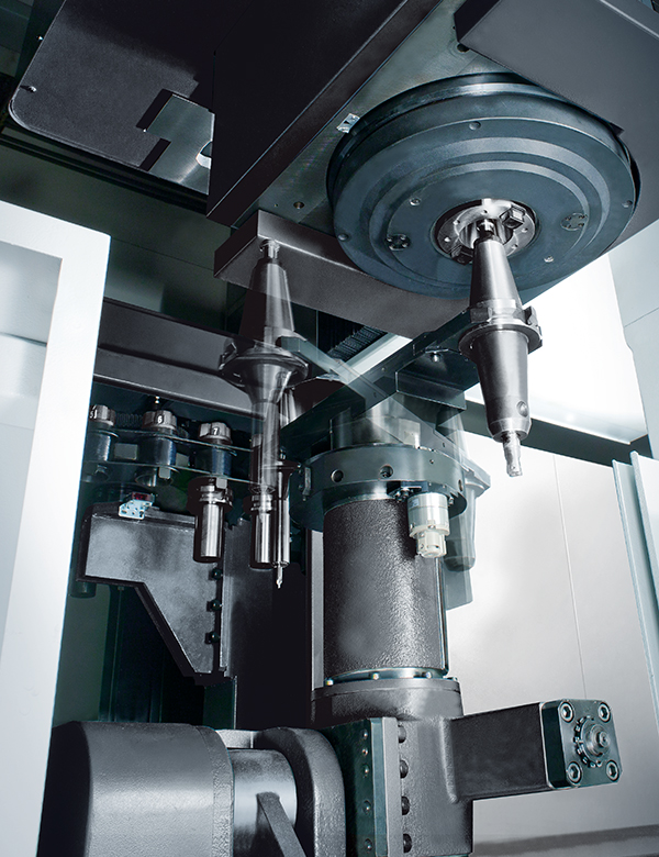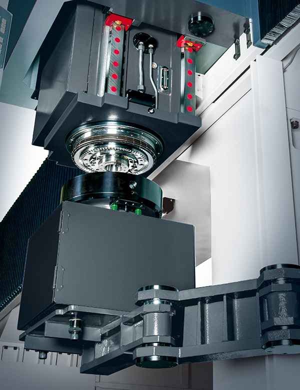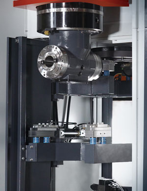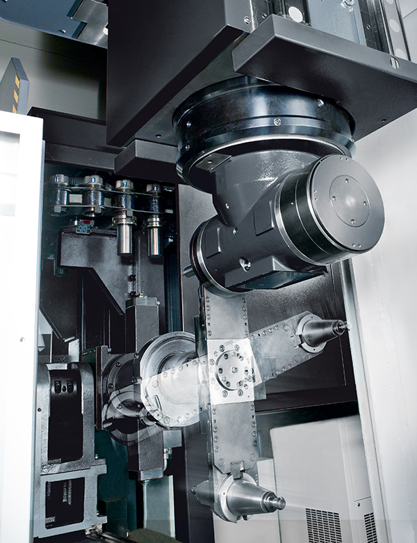 選配自動(dòng)交換頭庫(kù)與立臥換刀系統(tǒng)成為五面加工機(jī),工件經(jīng)一下設(shè)定即可高效率完成五面加工任務(wù)