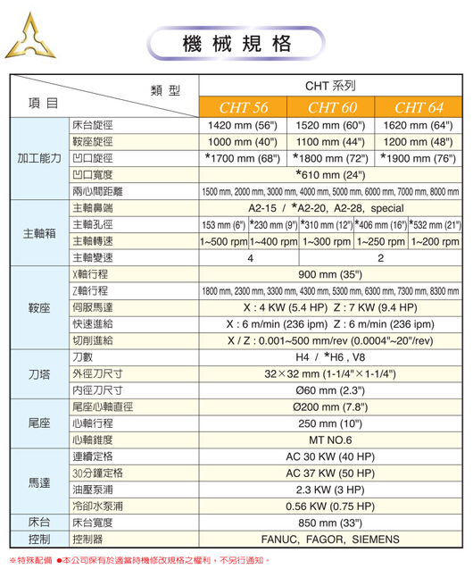 CHT 56200附16主軸孔徑